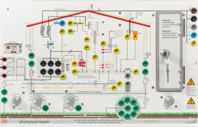 Das Board ist mit einem Trenntransformator und einem Isolationswächter ausgestattet. Ein zusätzlicher Fehlersimulator und verschiedene Anwendungssimulationen ermöglichen es, die Erst- und Wiederholungsprüfung nach DIN VDE 0100 unter verschiedenen Bedingungen durchzuführen. In Verbindung mit anderen Komponenten lassen sich umfangreiche Projektaufgaben realisieren.