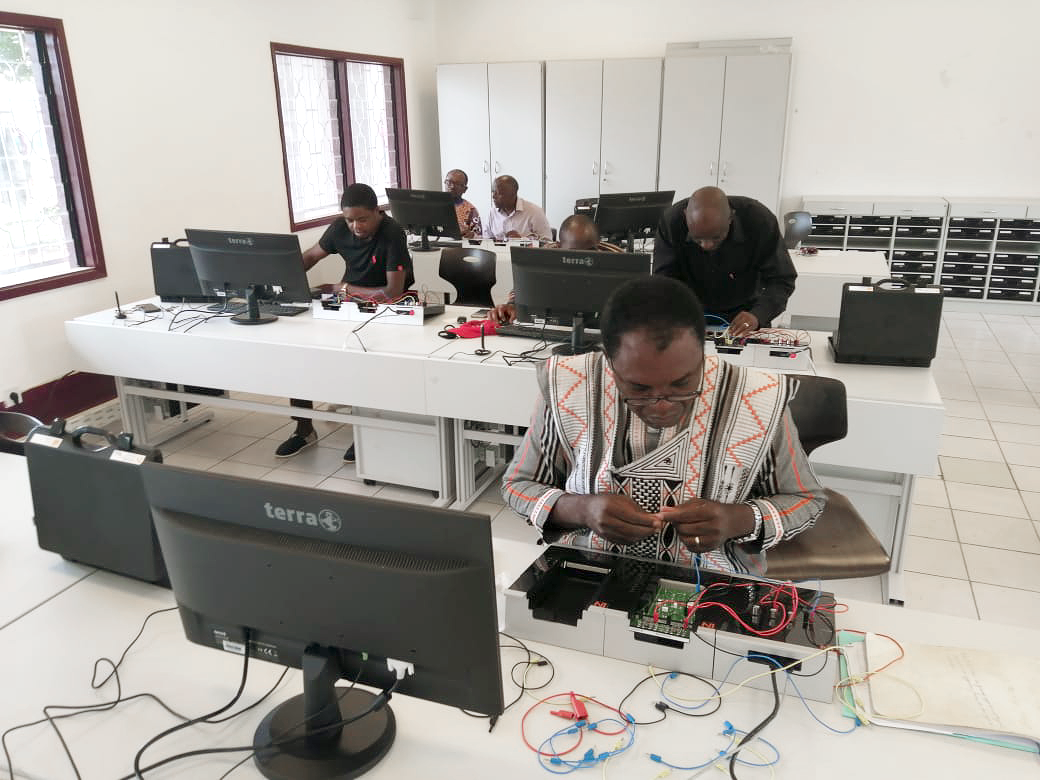 Ziel war es, die Kapazitäten der Labore auszubauen, um mehr Studierende ausbilden zu können. Darüber hinaus sollen Theorie und Praxis stärker verzahnt und den Studierenden ein zukunftsfähiges Lernumfeld geboten werden. Gemeinsam mit Lucas-Nülle wurden die drei modernen Labore für Mechatronik, Robotik und Elektronik in Tegucigalpa geplant und realisiert. Im Fokus standen die Themen Industrie 4.0, Industrieroboter sowie UniTrain-Kurse für Grundlagen Elektronik, Digitaltechnik, Leistungselektronik, elektrischen Maschinen, Messtechnik und Automatisierungstechnik. Die Schulungen fanden am LN-Hauptsitz in Kerpen nach dem Train-the-Trainer-Prinzip statt und fanden großen Anklang bei den Lehrkräften.