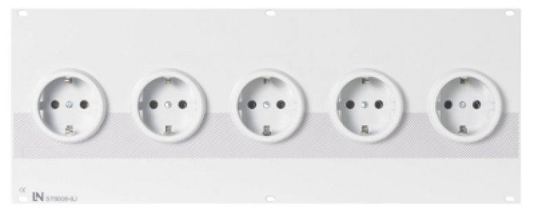 Einschub Steckdosenfeld 5x230V, 16A zur Versorgung von netzgespeisten Geräten und Verbrauchern. Alle Steckdosen sind nebeneinander verbaut und parallelgeschaltet.